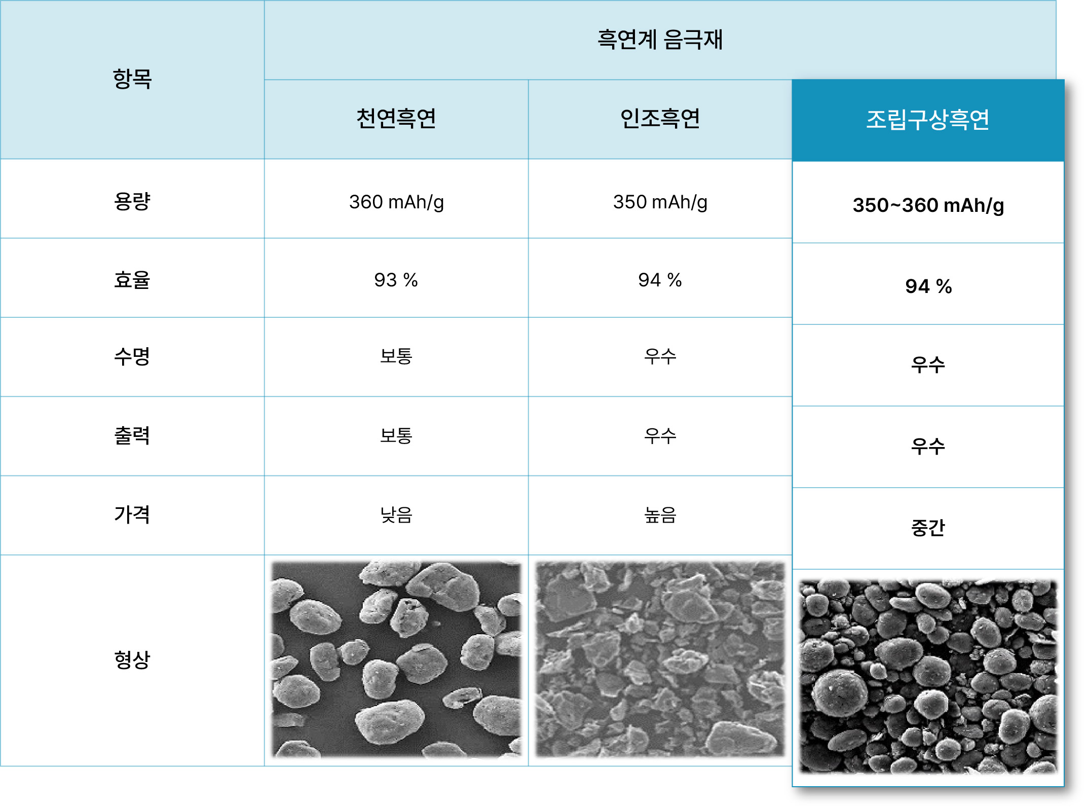 흑연 음극재 비교